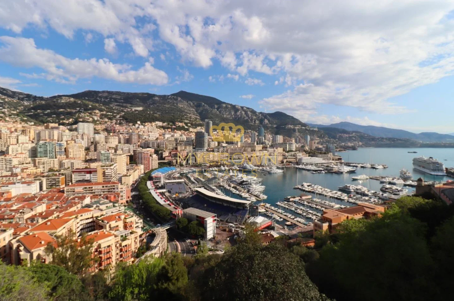 Sunlight remains limited on the north side, but the building benefits from a very beautiful unobstructed view of all of Monaco, the port, the sea, the beginning of Cap Martin, and a section of the Formula 1 circuit, from the 2nd floor. On the 1st floor, the view is partially obstructed by the vegetation along the road. There is very little noise pollution.