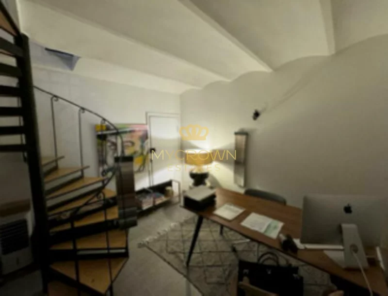 Questo affascinante duplex offre una disposizione pratica a uso misto, ideale sia per scopi residenziali che professionali.