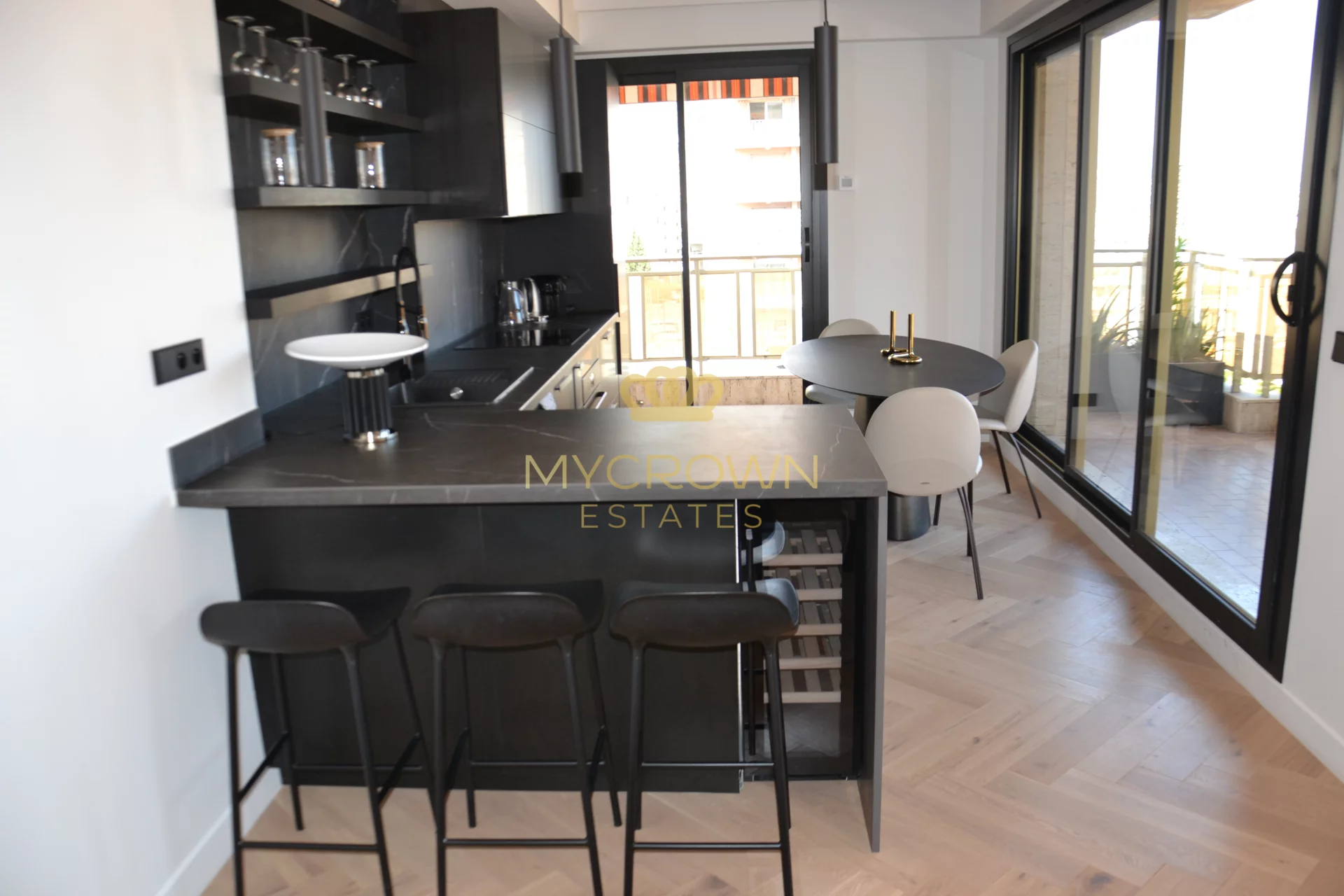 Beneficiando di un duplice aspetto e di un'esposizione a sud-ovest, l'appartamento è inondato di luce naturale durante tutto il giorno. Si apre su una generosa terrazza di 27 m², che offre un'incantevole vista sulla città e una vista parziale sul mare.