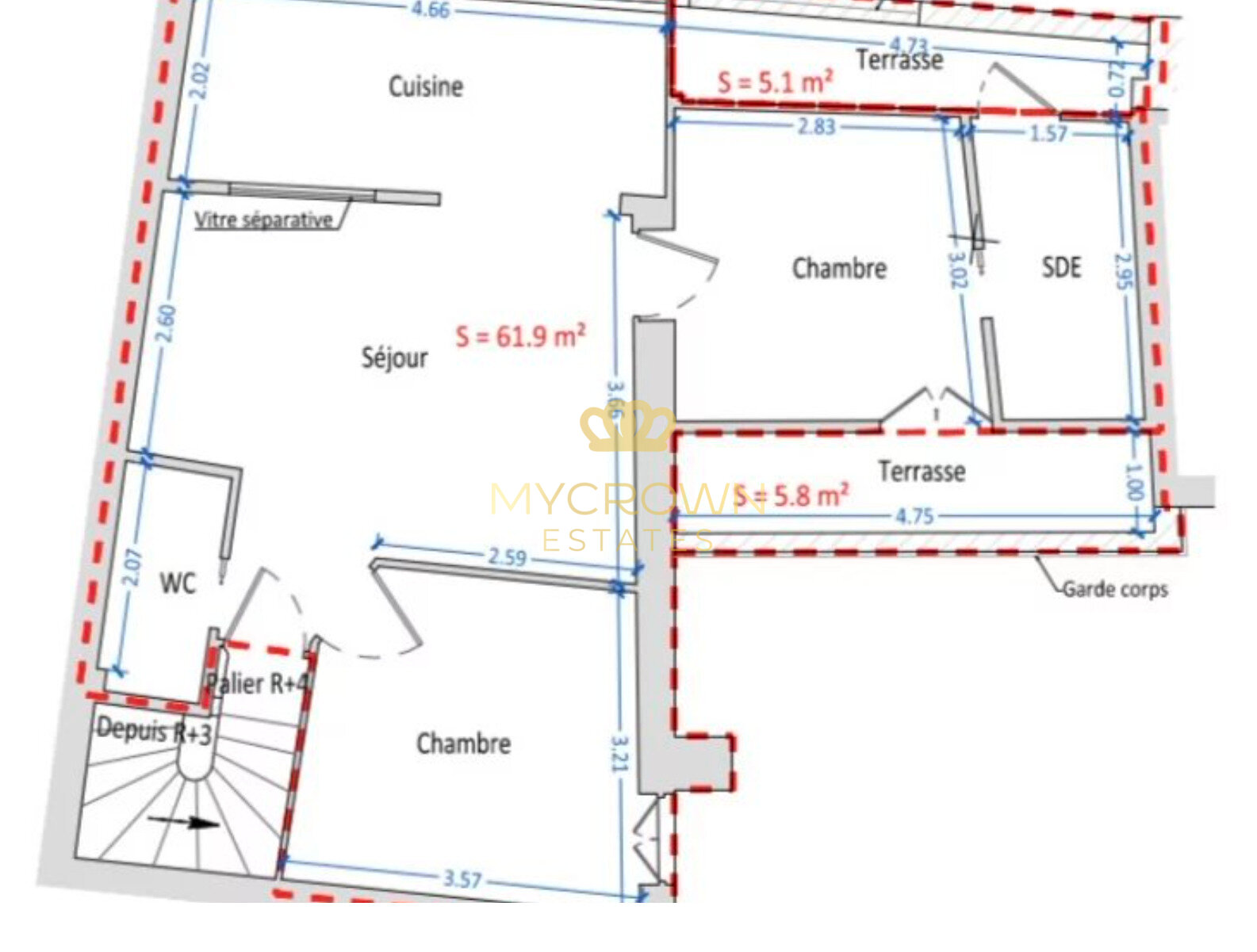 Il y a possibilité d'acquérir l'appartement du 3ème étage et de les réunir.